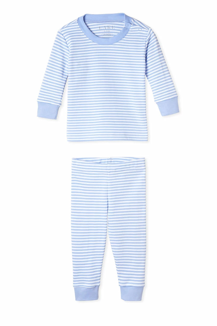 The Baby Long-Long Set in Hydrangea, our best-selling purpley blue, features a long-sleeve top with two functional snaps and pants with an elastic waist. Made from 100% Pima Cotton. This garment is not flame resistant. For the child’s safety, this garment should fit snugly.
