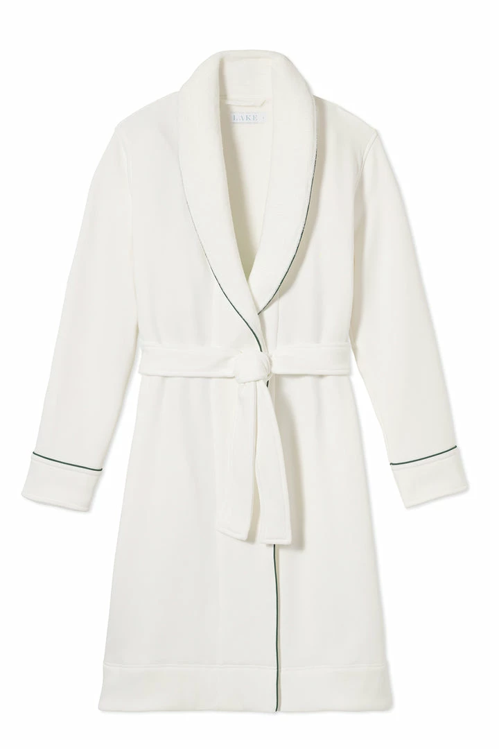 The Cozy Robe in Ivy, an ivory base with deep green trim, is heavier than our signature robes but with all the same great features — a sleek turndown collar, sewn-in belt, and roomy pockets. It’s lined in fleece with a soft cotton jersey exterior.