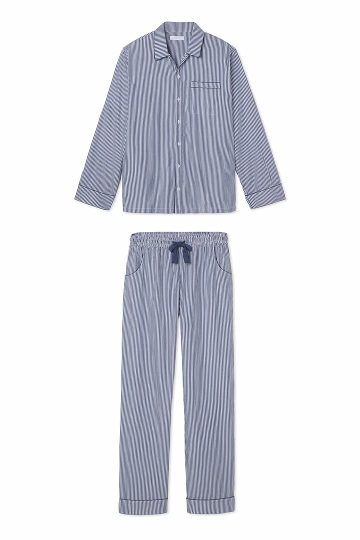 LAKE Men’s Poplin Pajama Set In Navy Stripe