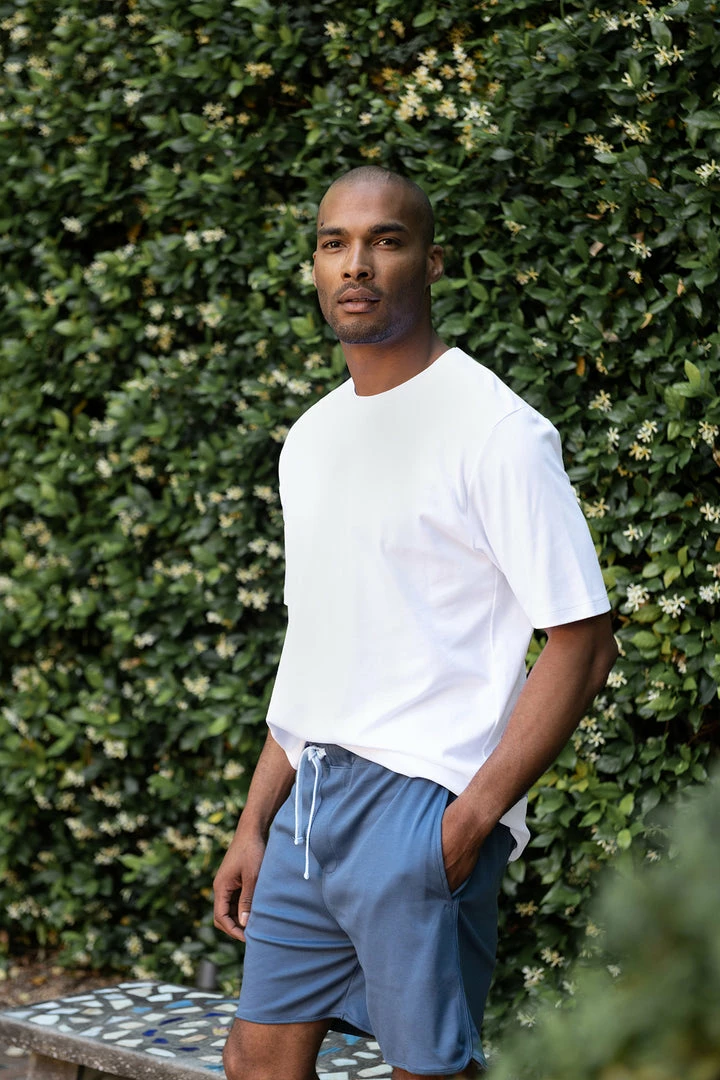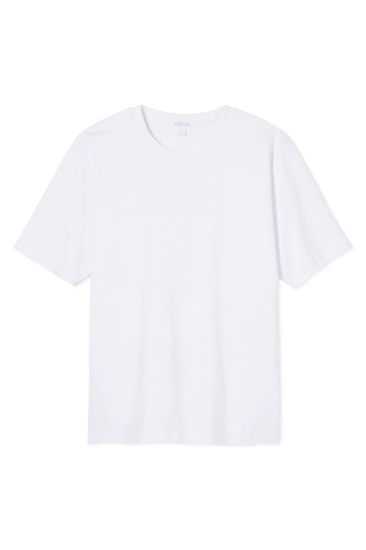 The Mens Short Sleeve Pima Tee in White is ideal for lounging at home or cruising in comfort. This style is a short-sleeve crewneck and is made from luxuriously soft, 100% Pima cotton.