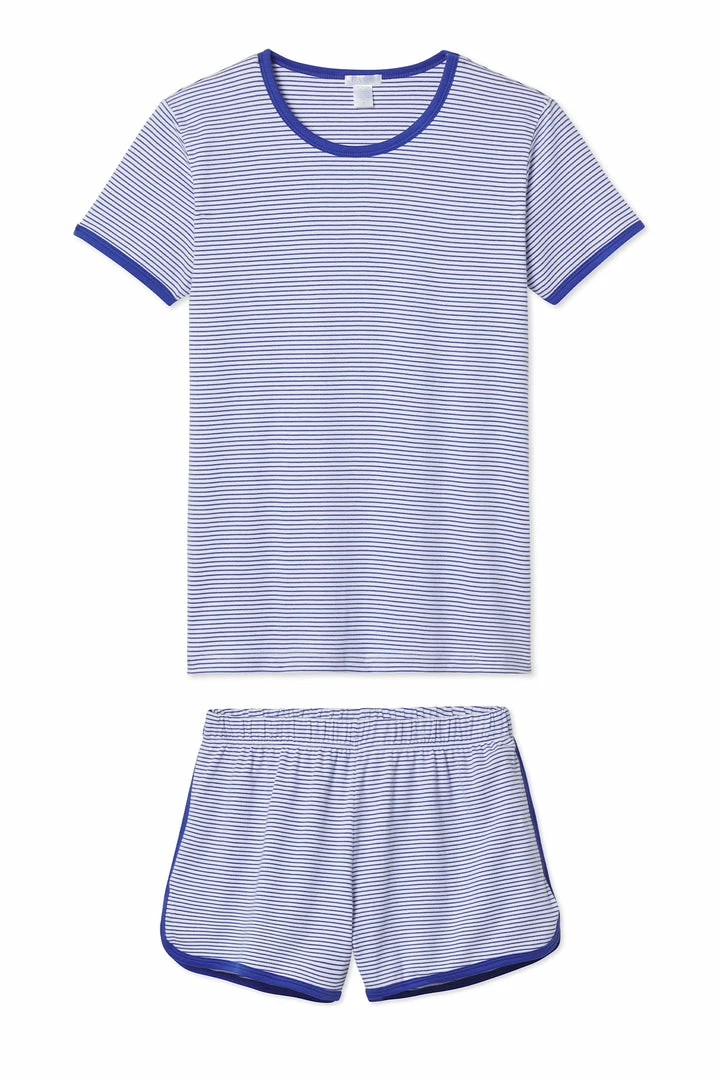 LAKE Pima Retro Shorts Set In Lapis Sleep
