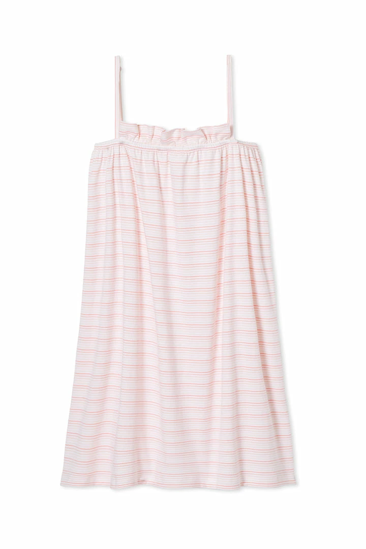The Ruffle Nightgown in Bellini Ombre, pretty peachy-orange gradient stripes on white, was designed with simple, adjustable spaghetti straps and is our sweetest sleepwear yet. Made from 100% Pima cotton.