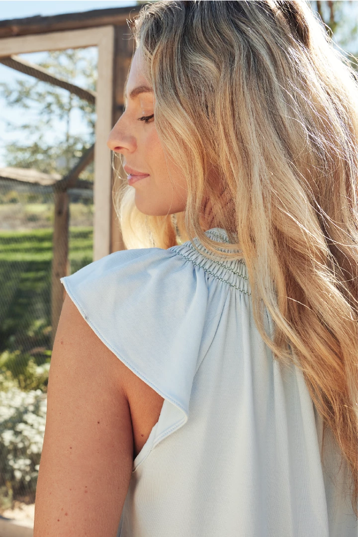 The Smocked Flutter Shorts Set in Rain Wash, a cleansing, soft blue colorway with grass-green smocking, features a top with pretty flutter sleeves and coordinating smocking at the neck and is paired with our perfect stay-put shorts. This set will take you through the warmer months with ease. Made from 100% Pima cotton.