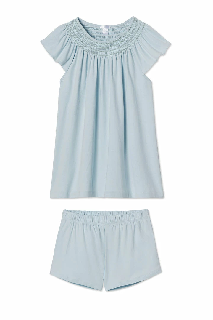 LAKE Pima Smocked Flutter Shorts Set In Rainwash