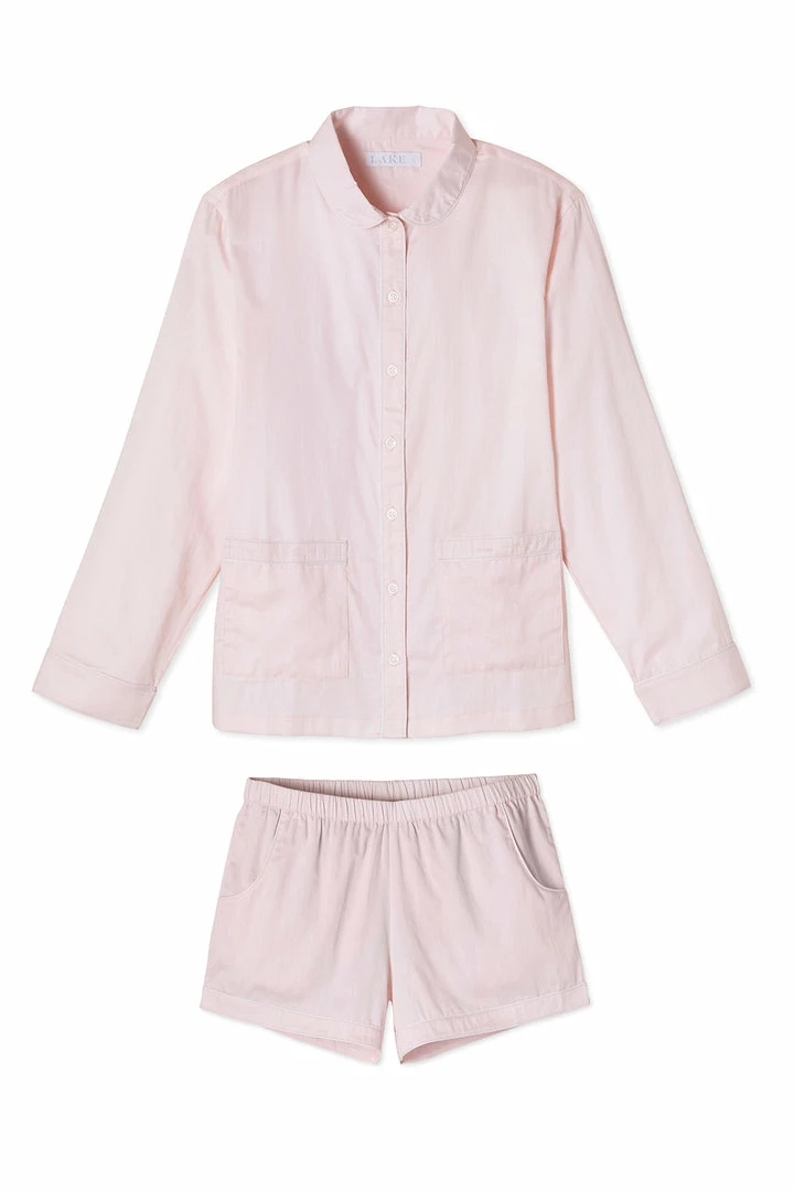 LAKE Poplin Piped Shorts Set In Pale Pink